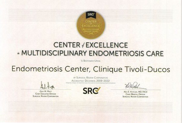 Le Professeur ROMAN et le Dr MERLOT ont reçu le prix du Centre d’excellence en soins multidisciplinaires de Endométriose de Surgical Review corporation (Etats-Unis), le Dr DENNIS dispose également de l’accréditation Master Surgeon du SRC.